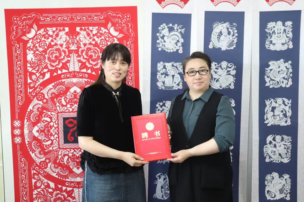 院徽剪纸赠情谊,薪火相传聘名师。精彩的剪纸体验活动后,举行了简朴而有意义的捐赠与聘任仪式。为支持公司文化建设,薛娜老师将精心创作的kai云体育官方app院徽主题剪纸作品赠予公司。该作品尺寸达 120*120,巧妙地将传统剪纸艺术与公司特色融合,极具艺术价值与纪念意义。甘露露代表公司接受捐赠,并向薛娜老师致以诚挚谢意。随后,甘露露为薛娜老师颁发聘书,聘请其为公司“非遗文化传承导师”。甘露露在致辞中表示,此次聘任标志着公司与非遗传承人深度合作的良好开端,下一步,公司将定期邀请薛娜老师走进校园,开展系列非遗剪纸文化体验活动,引导青年学子在动手实践中体味非遗之美,感悟匠心之韵,真正做到“以美化人,寓教于乐”,让传统文化在青年群体中生根发芽。