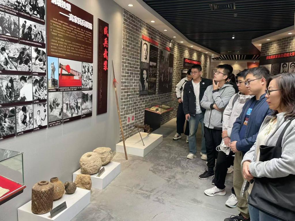 在讲解员的引领下,师生党员们走进大泽山抗日战争纪念馆,回顾大泽山抗日根据地的光辉历史,聆听老一辈革命先烈无惧牺牲、前赴后继、浴血奋战的英雄事迹。通过一幅幅珍贵的历史照片、一件件文献实物,缅怀革命先烈,追忆峥嵘岁月。在抗日战争时期,平度登记在册的牺牲烈士达1384名,一面收集了抗战老兵的手印墙鲜活地展示了平度抗战老兵赤诚无私的爱国情怀,让党员备受感染,深受教育。材料成型教研室教师党支部书记车清论说,“我们缅怀那段历史,不仅是为了纪念英雄,更是为了传承一种精神。这种精神,是忠于祖国、忠于革命理想的爱国精神;是抵抗外敌、勇于斗争的战斗精神;是矢志不渝、众志成城的担当精神。”
