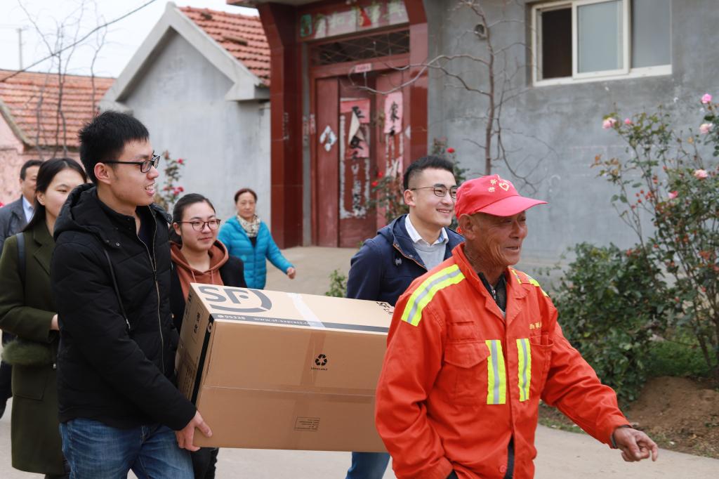 慰问演出结束后,员工党员分组进行“送温暖”活动。一组员工党员在林海涛的带领下到低保、贫困家庭进行慰问,大家不仅带去了从公司募捐来的衣物,同时为老人唱歌、陪老人拉家常、打扫卫生,将关爱送到老人心中。二组员工党员在丁于娟老师的带领下探访了村内的留守儿童,为他们带去了捐赠的衣物和书籍,并通过趣味游戏拉近了距离,员工党员还与有需要的初高中生结成一对一课业帮扶对子。