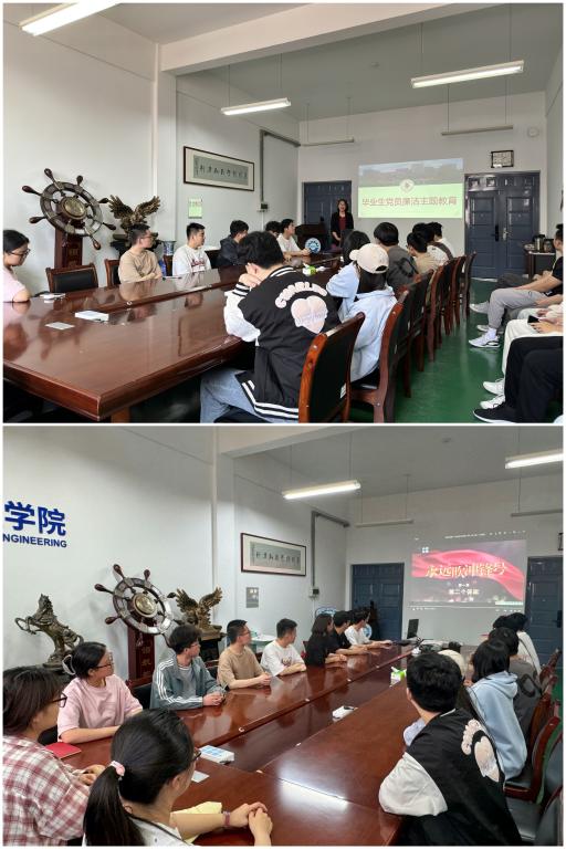 展馆通过图文视频、VR体验、互动展示等多种学习方式,将传统文化与典型案例、真实场景相结合,以生动的案例警示大家在学习、工作中要时刻保持清醒头脑,知敬畏、存戒惧、守底线。董虎结合学习内容现场为毕业生党员讲授题为“立德修身 清风启航”的主题党课,鼓励全体毕业生要常修为政之德,常思贪欲之害,常怀敬畏之心,新的征程要坚定理想信念,胸怀家国责任,练就过硬本领,立德修身,不负韶华,勇担时代使命。 这堂深入浅出的沉浸式主题党课,内容丰富,形式新颖,发挥了良好的教育引导作用。