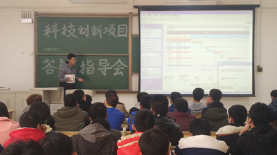2016年11月24日中午,机械公司在教学楼B329举行科技创新项目答疑指导会。本次会议由往届参加省机电创新大赛的优秀参赛代表邢旭东、何毅、董勇志、学术部部长王克楠给大家做答疑指导。