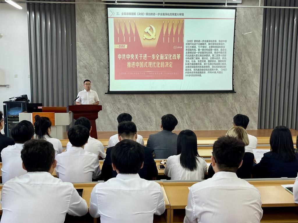 为促进青年团员领悟全精神,提高思想觉悟意识,团委组织员工组织、各班级团支部认真学习宣传贯彻党的二十届三中全会精神。党委副书记董虎面向全体员工骨干开展宣讲,他指出,党的二十届三中全会强调了改革的重要意义,作为员工骨干,要勇于创新,做时代的开拓者。既要有自强不息的奋斗精神,又要有创新驱动的改革意识,敢打“头阵”、争做“主角”,主动投身国家事业发展大潮之中,脚踏实地、苦干实干。