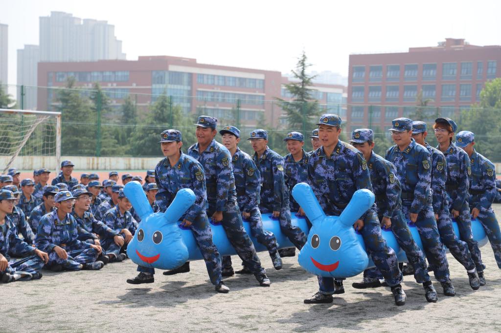 “当我们围成一个圈,一根绳子就不再是一根绳,它紧密连接我们彼此的力量,当每个人伸出一只手,它便变成美丽的‘花开’,好美妙啊!团体力量的强大让我十分感动。”安全243班张宜彤同学不禁这样说道。在活动中,同学们互相支持,依靠彼此合力成功完成了“花开花合”“同起同坐”等各种挑战,提升了默契程度,激发了团队力量。在快乐向前冲环节,员工们团结协作、齐力向前,现场气氛活跃,响亮的口号和整齐的动作成为军训场地一道亮丽的风景。