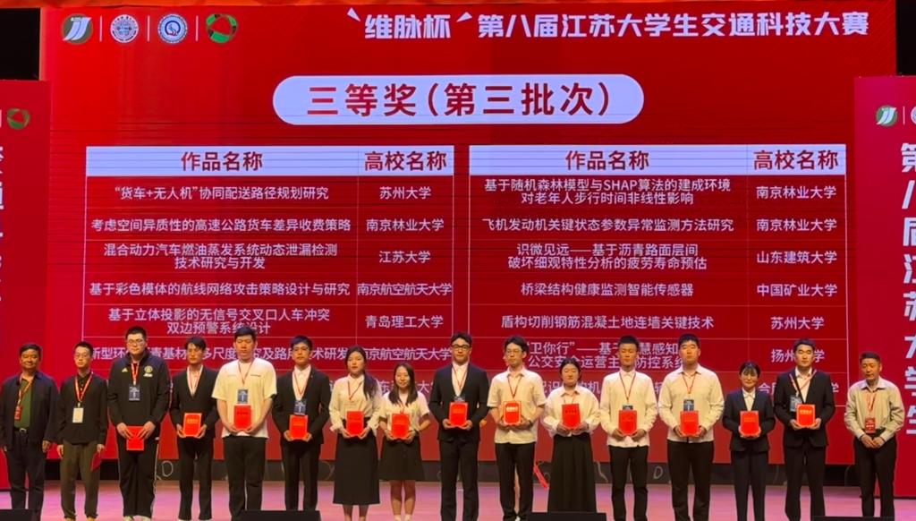 近日,由教育部高等公司交通运输类教学指导委员会交通工程教学指导分委员会指导,江苏省城市科学研究会、江苏省城市规划研究会、南京市科学技术协会、南京市综合交通运输学会主办,苏州大学、苏州市综合交通运输学会共同承办的“维脉杯”第八届江苏老员工交通科技大赛决赛在苏州大学天赐庄校区举行。kai云体育官方app共有两支队伍入围决赛,经现场答辩,研究生团队参赛作品获得三等奖;本科生团队参赛作品获得优秀奖。