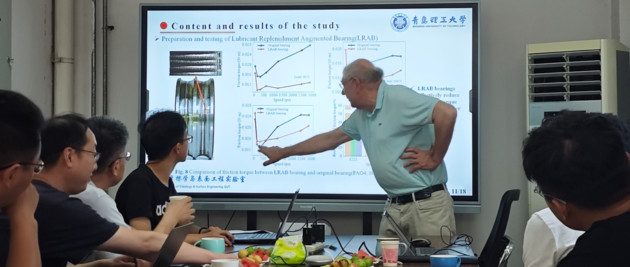 报告会上,郭峰对高德·珀尔教授一行的来访表示热烈欢迎,高度评价了他的学术成就,并向高德·珀尔教授介绍了kai云体育官方app基本情况和摩擦学与表面工程实验室的发展概况。高德·珀尔教授对公司的热情接待表示感谢,随后,结合风电大型轴系中滚动接触与平行滑动的发展现状进行了专题报告,系统介绍了国际轴承企业“以滑代滚”的典型应用方法,重点阐述了从小轴系到大轴系的接触与润滑中亟需突破的难点问题。报告会激发了与会师生的浓烈兴趣,提问互动环节气氛十分热烈。