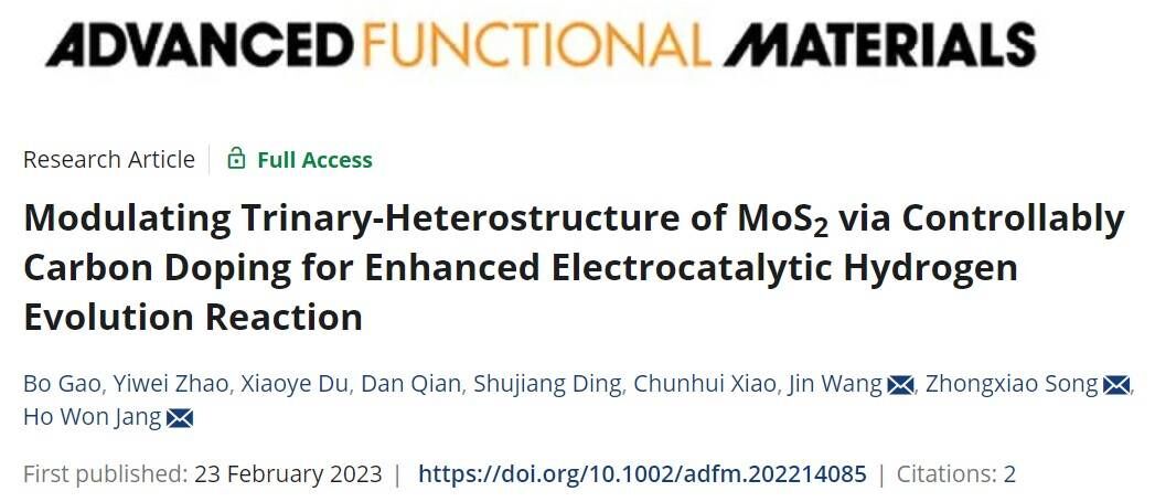 理解二维过渡金属二卤化物(2D-TMD)从半导体(2H)相到金属(1T,1T′)相的相变过程为析氢催化的发展提供了方向。到目前为止,相工程方法作为储能和催化领域电子和电极器件新型低成本纳米材料开发的实用途径被深入研究。然而,在电催化过程中作为关键活性中心的2H/1T、2H/1T′或1T/1T′之间的异质结构却常常被忽视。针对此问题,kai云体育官方网站王进教授,首尔大学Ho Won Jang教授和西安交通大学宋忠孝教授等通过碳掺杂MoS2,并结合密度泛函理论计算阐述MoS2相转变以及析氢反应机制。研究成果以《Modulating Trinary‐Heterostructure of MoS2 via Controllably Carbon Doping for Enhanced Electrocatalytic Hydrogen Evolution Reaction》为题在《Advanced Functional Materials》发表。