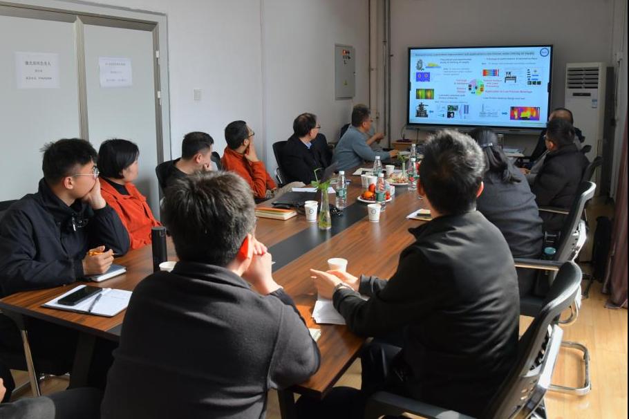 期间,郭峰介绍了公司和实验室的发展情况,重点介绍了实验室在滚动轴承基础研究和工业应用方面取得的进展。实验室副主任栗心明教授向舍弗勒团队专家们介绍了项目合作进展情况、项目在轴承润滑测试技术上取得的突破,以及项目取得的阶段性成果。实验室老师们和舍弗勒专家围绕滚动轴承润滑测试技术、轴承电蚀、润滑数值分析等方面进行了深入的座谈交流。