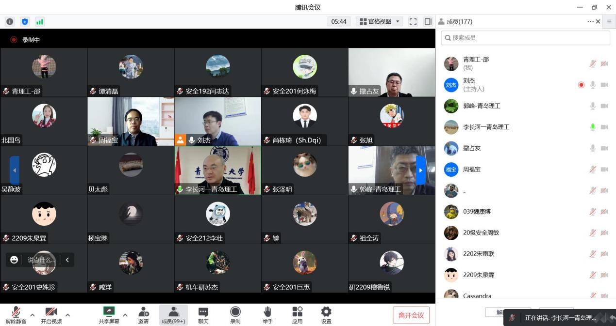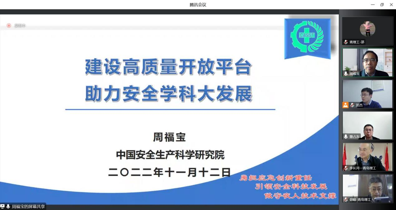 为进一步推动公司安全科学与工程学科高质量发展,11月12日下午,中国安全生产科学研究院经理周福宝教授应邀作了题为《建设高质量开放平台,助力安全学科大发展》的专题报告,党委常委、副董事长李长河教授主持会议并讲话,kai云体育官方app经理郭峰教授、副经理刘杰副教授、安全科学与工程学科专业负责人撒占友教授以及任课教师、研究生和本科生200余人线上参加,会议由李长河主持。