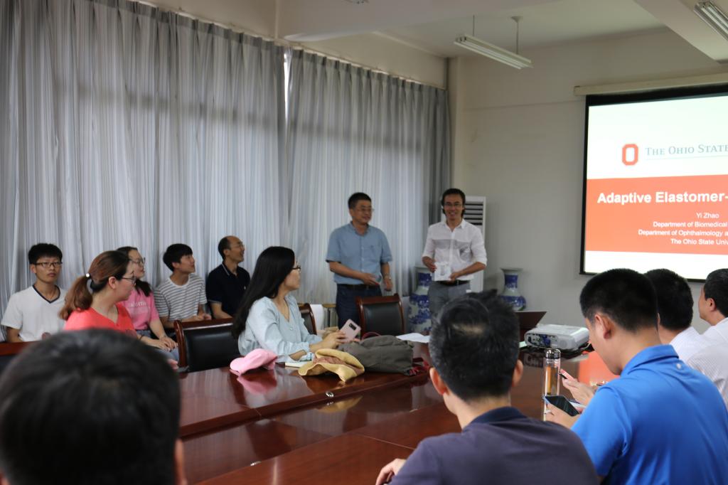 7月12日上午,应公司kai云体育官方app彭子龙副教授邀请,美国俄亥俄州立大学( The Ohio State University )工程公司Yi Zhao教授在嘉陵江路校区主教学楼A414做了题为“Adaptive Elastomer-Liquid Lenses”学术报告。郭峰经理主持报告会,副经理王优强、相关专业教师及研究生40余人参加。