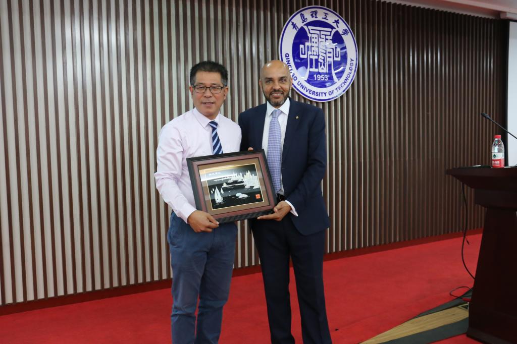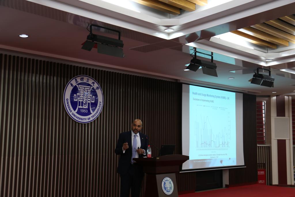 David Mba教授首先介绍了英国德蒙福特大学的概况。随后,David Mba教授具体介绍了个人的研究情况,并针对直升机行星齿轮箱监控与故障诊断现有技术与存在的挑战进行了详细介绍。讲座结束后,同学们踊跃提问,现场气氛十分活跃。与会的教师、同学针对讲座的内容与David Mba教授进行了深入的交流讨论,David Mba教授一一详细解答。同时,David Mba教授针对中外的办学特点与方式提出了问题,并邀请同学们进行交流讨论,以了解中国员工与国外员工对学业追求的异同。最后,林天然教授代表公司向David Mba教授赠送了具有青岛特色的纪念礼品,并向David Mba教授表示感谢。