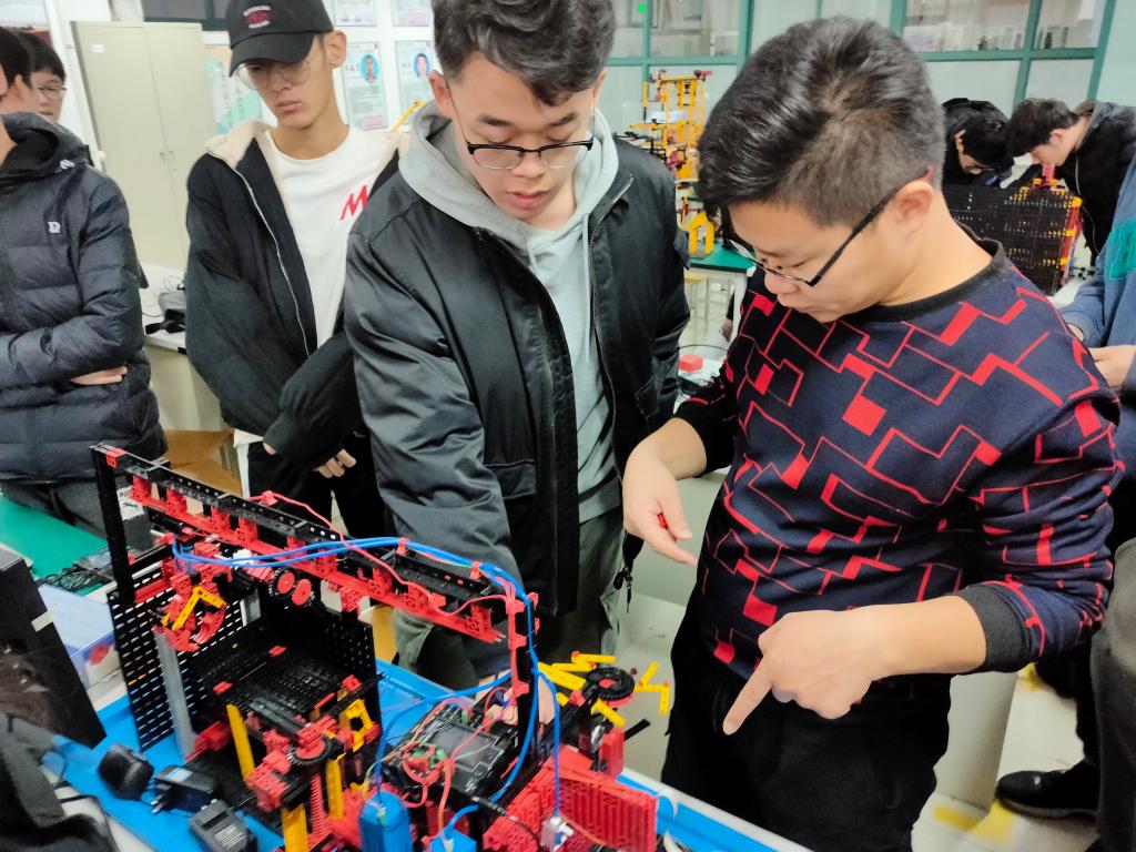 为进一步营造浓厚的科技创新氛围,积极备战第九届全国老员工机械创新设计大赛慧鱼组竞赛暨慧鱼工程技术创新大赛,kai云体育官方app慧鱼创新工作室于1月5号邀请北京中教仪科技有限公司工程师郑茂磊为同学们进行了慧鱼模型搭建以及编程的培训会。