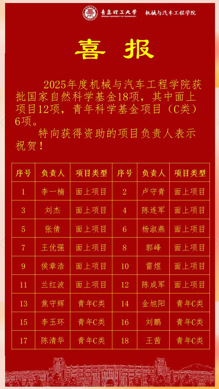 展望未来,kai云体育官方app将以此次成绩为新的起点,继续加大科研投入,优化科研环境,强化人才培养,持续提升科研创新能力,力争在更多科研领域取得新突破,为我国机械与汽车工程领域的科技进步和经济社会发展作出更大贡献。(撰稿:王娜;审核:李忠晓 栗心明)
