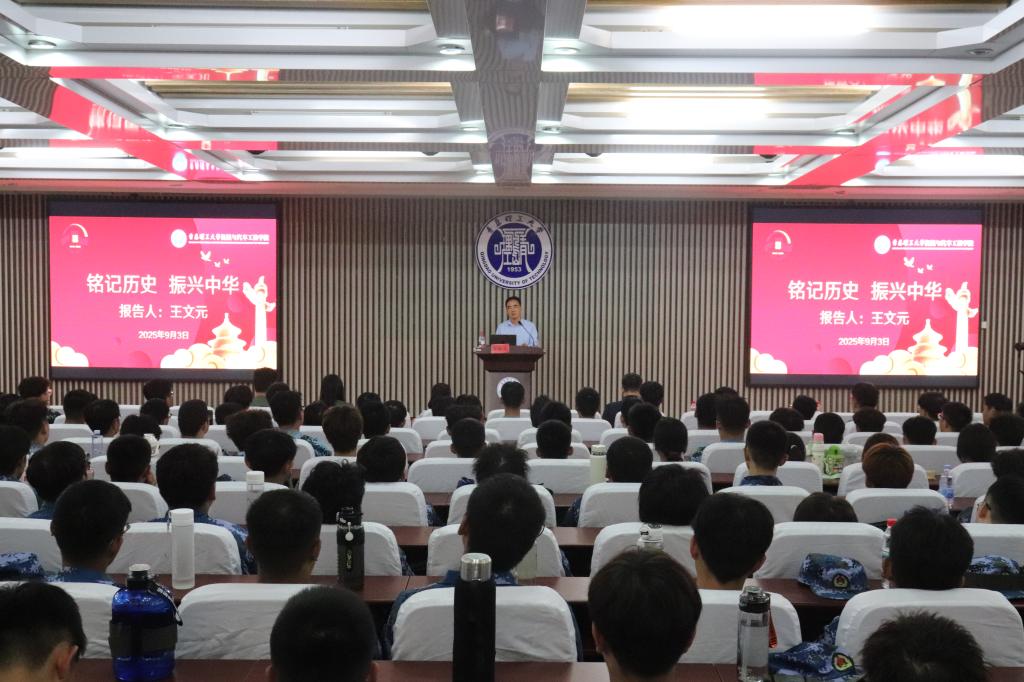 王文元以抗战胜利80周年阅兵仪式为切入点,通过“中国为什么要阅兵”的深刻发问,系统梳理了中国共产党带领人民从站起来、富起来到强起来的伟大飞跃。他结合“红嫂”明德英乳汁救伤员等沂蒙革命老区的鲜活事例,生动再现了军民同心、共赴国难的壮阔历史,引发学子们对“革命先烈为何甘愿牺牲”的时代思考。他以“是什么样的信念让革命先烈不惜付出生命”叩问当代,深刻阐释了革命先烈坚定爱党爱国的崇高理想,并号召青年一代永葆爱国热情、勇担时代使命,将专业学习与国家发展紧密结合,以科技创新助力祖国奋进新征程。
