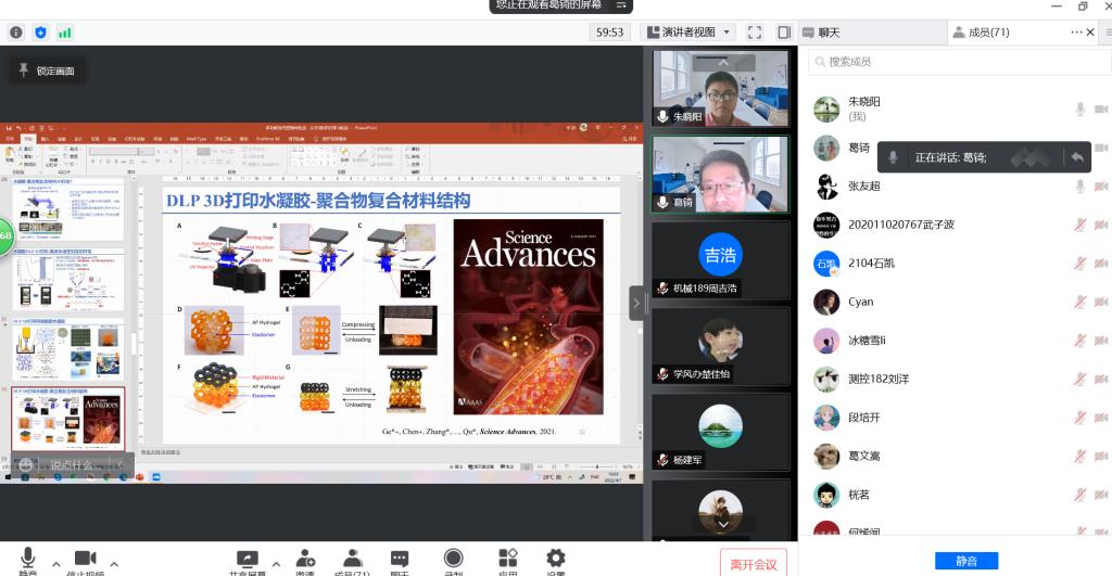 4月1日下午,应kai云体育官方app邀请,国家特聘青年专家、南方科技大学机械与能源工程系葛锜研究员为公司师生作了题为多功能增材制造:从3D到4D打印的高端线上学术报告。报告会由kai云体育官方app朱晓阳老师主持,相关专业师生200余人参加。